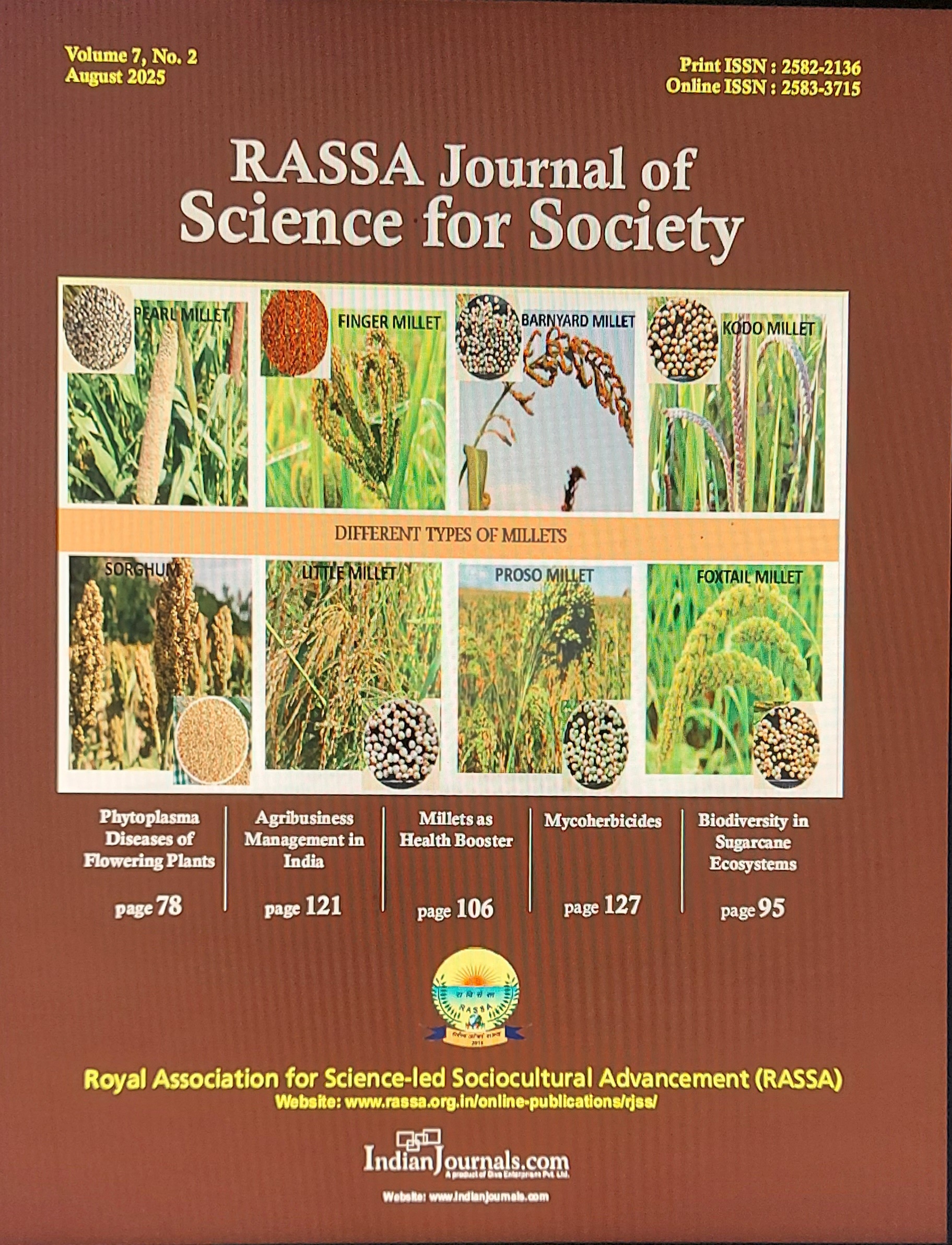 The RASSA Journal of Science for Society covers topics and issues related to all the disciplines of Sciences and Humanities such as Medical Sciences, Agricultural and Veterinary Sciences, Engineering, Economics, Management and Home Sciences, with special emphasis on the translational impact and usefulness of this research for the Society. This journal is published three times in a year in April, August and December by the Royal Association for Science-led Socio-cultural Advancement (RASSA) Society, New Delhi. It is available in print and online versions. RASSA Journal of Science for Society is peer-reviewed and publishes original research reports, review papers, communications, news and comments screened by national and international researchers who are experts in their respective fields. Original manuscripts that enhance the level of general awareness of science in society are encouraged and invited. The manuscripts must be unpublished and should not have been submitted for publication elsewhere. There are no publication charges.